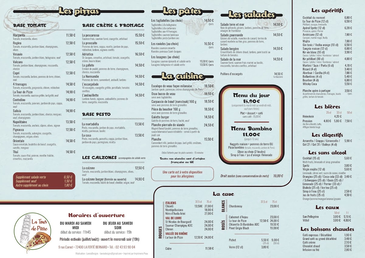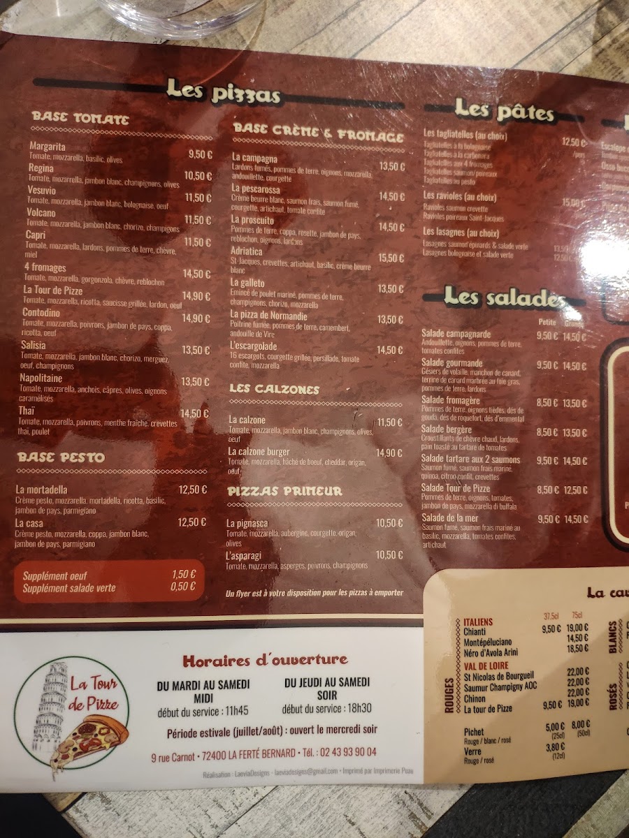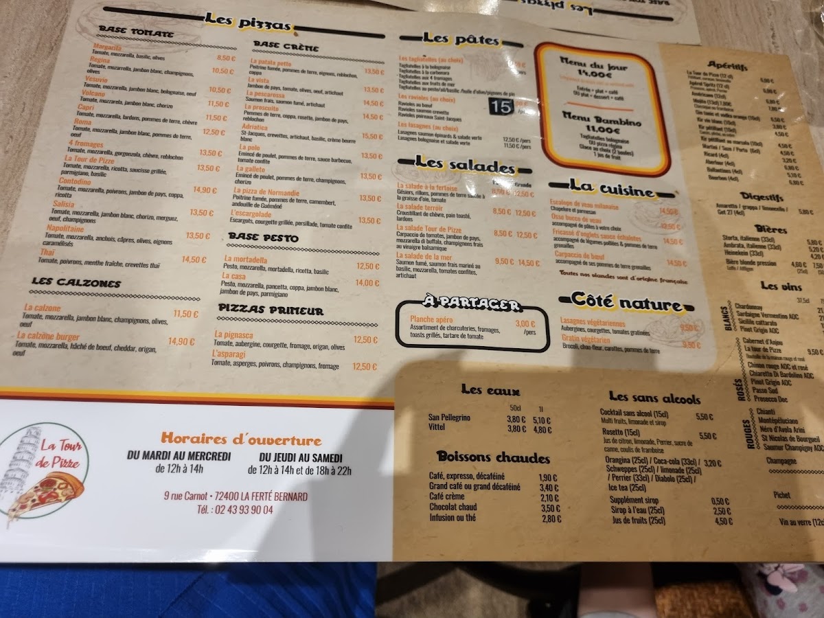 Welcome to La Tour de Pizze, a hidden gem nestled in the heart of La Ferté-Bernard. This charming pizzeria, located at 9 Rue Carnot, offers a delightful escape for food lovers seeking authentic Italian flavors. With a menu filled with homemade dishes, each pizza is crafted with care using the finest ingredients, ensuring a quality experience that leaves patrons raving.